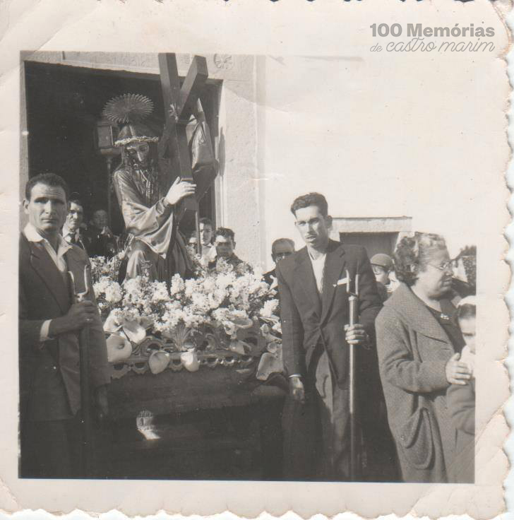 Procissão a sair da Ermida de São Sebastião, Castro Marim, 1961, Junta de Freguesia de Castro Marim