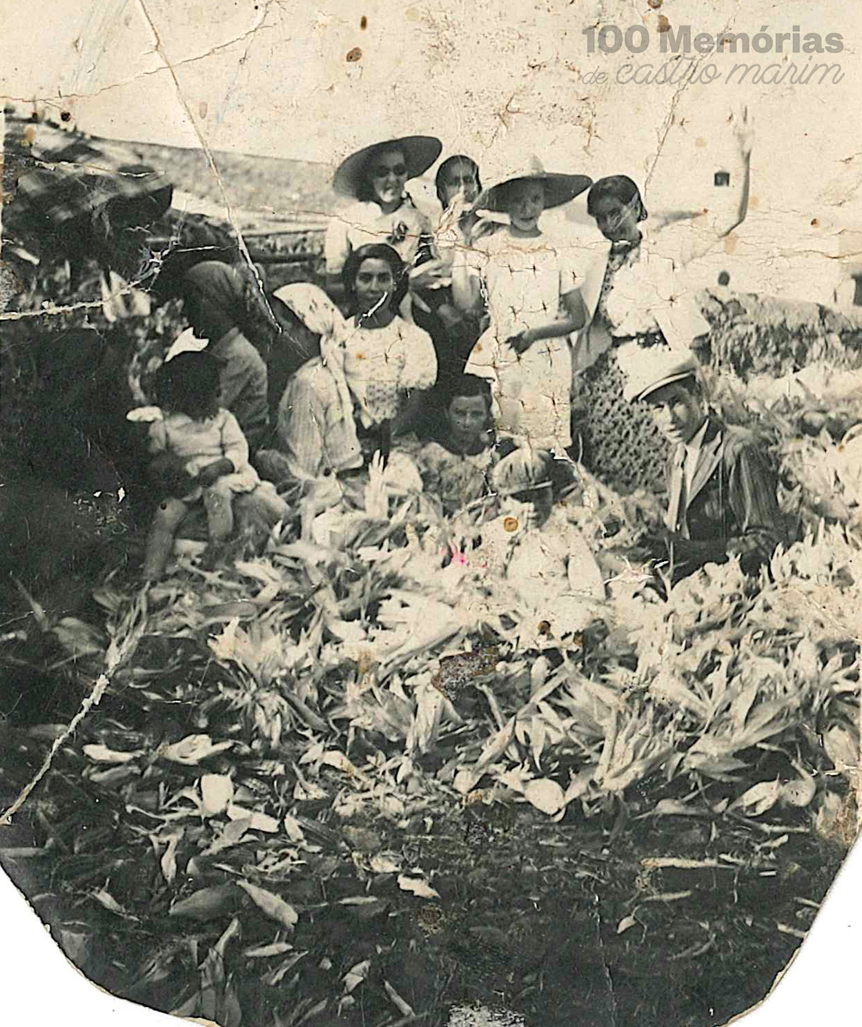 Grupo de populares durante a desfolhada, Montes Castilhanos, Celso Guiomar